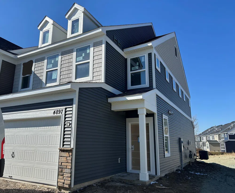 Complete in March! This home is on a cul-de-sac with gazebo and tot lot across the street! This beautiful Bowman floorplan is an END HOME and features an open concept floorplan complete with gas fireplace and privacy. Gorgeous kitchen with the most popular interior finishes; quartz countertops, white cabinets with soft close & dovetailed drawer construction and gas stove...an entertainer's dream! Upstairs you will find a stunning owner's suite with private bath featuring a tile shower. Two additional bedrooms and an upstairs laundry make this a MUST SEE! The community offers a private dog park, community firepit, tot lot & gazebo and is conveniently located close to interstates, airport, shopping, trails and Lebanon Hills Regional Park. Home will be complete in March 2024.